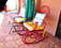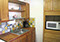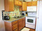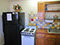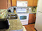 Cabinets stocked with pots, pans, dishes, cutlery, etc.